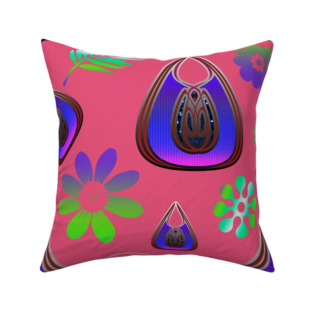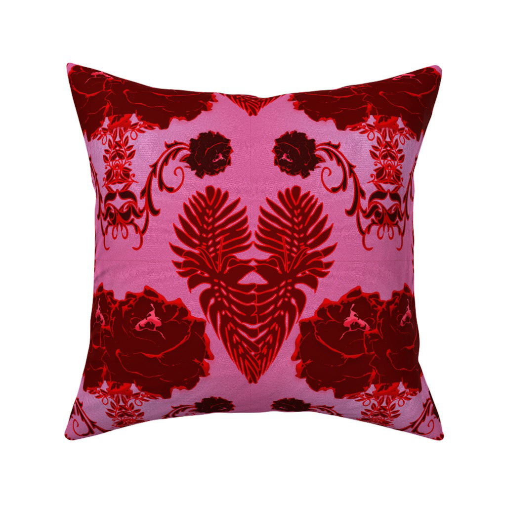 Rose Leaves Print on Dark Pink Silhouettes - Square