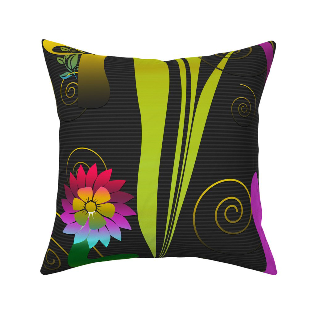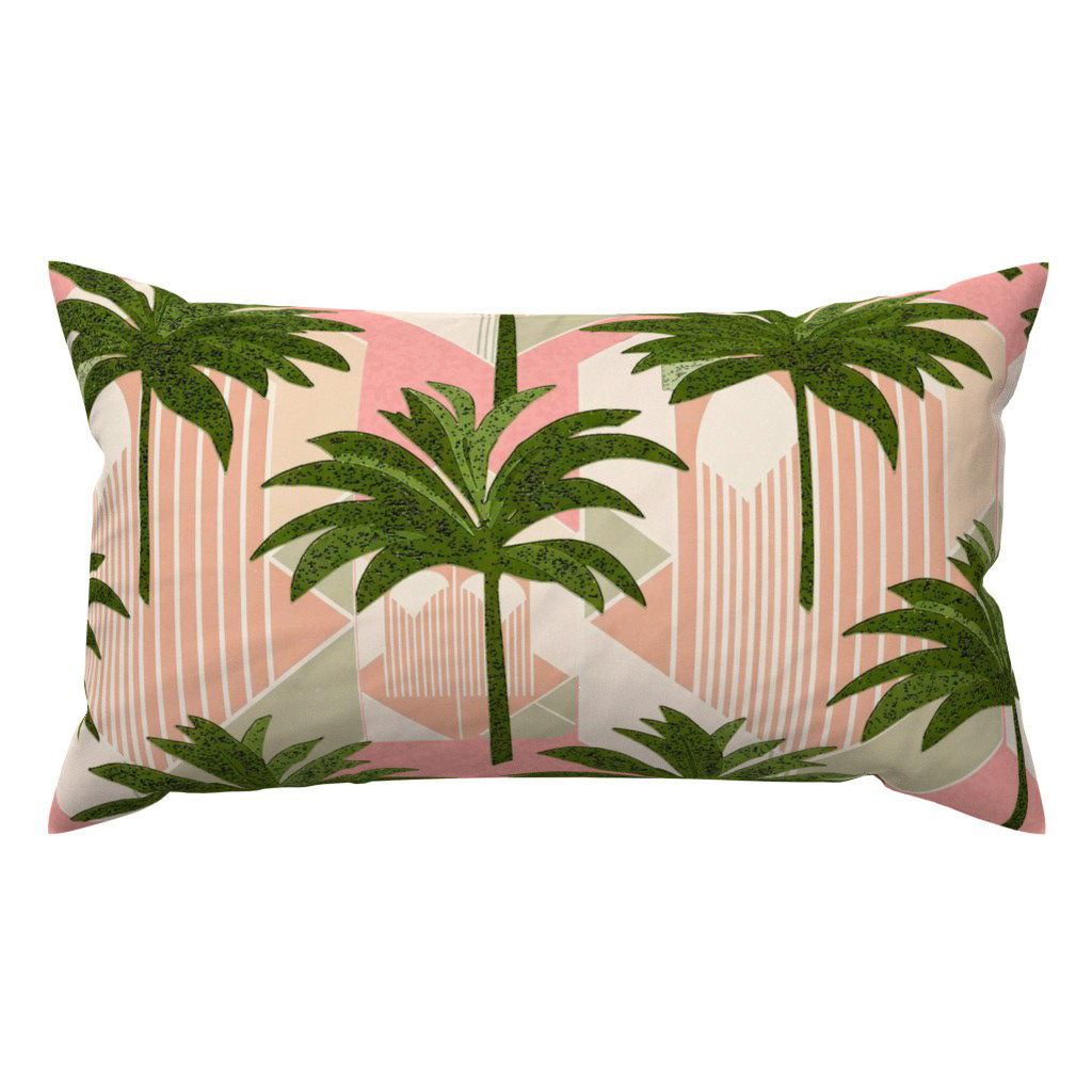 Rose Leaves Print on Dark Pink Silhouettes - Lumbar