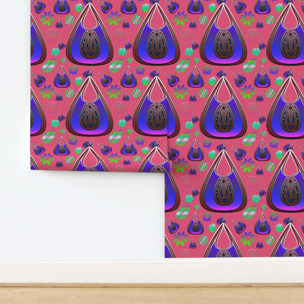Lilies and Roses Carved in Pink Stone 1 (Half-Drop)